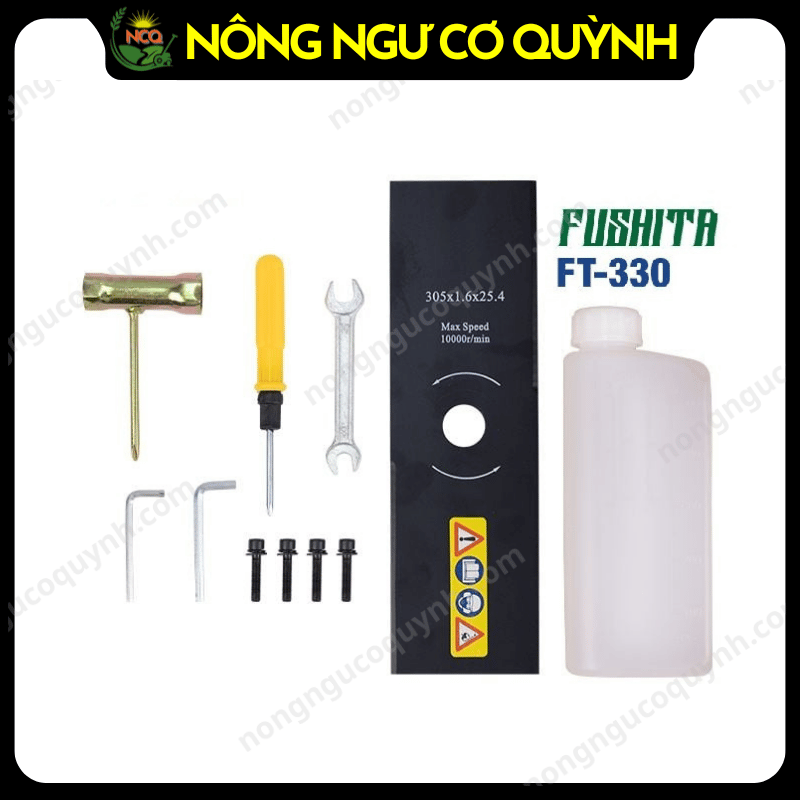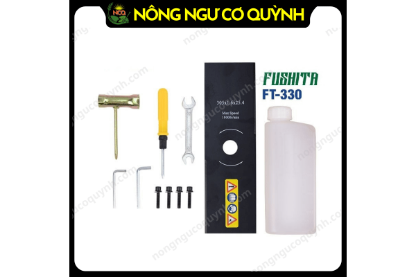 Tuy thuộc dòng máy cắt cỏ giá rẻ nhưng Fushita FT-330 vẫn được trang bị bộ phụ kiện với đầy đủ các vật dụng cần thiết cho việc sử dụng, tháo lắp. Cụ thể bộ phụ kiện chính hãng đi kèm máy gồm: