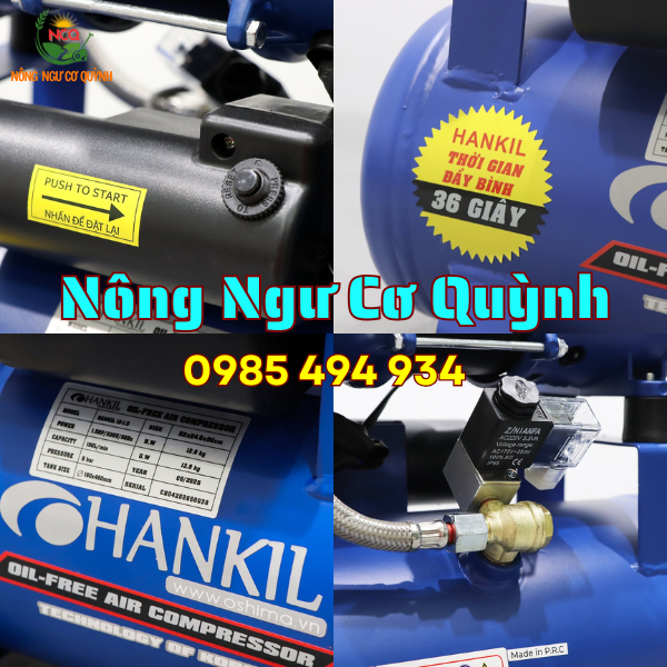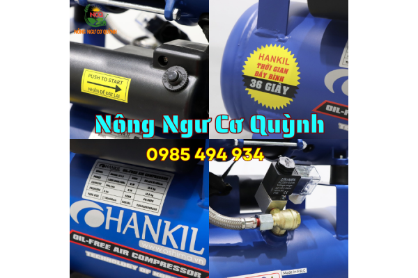 • Máy nén khí Hankil 12-1.5 1.5HP Điện 1 pha (Không dầu, nhanh, dây đồng)