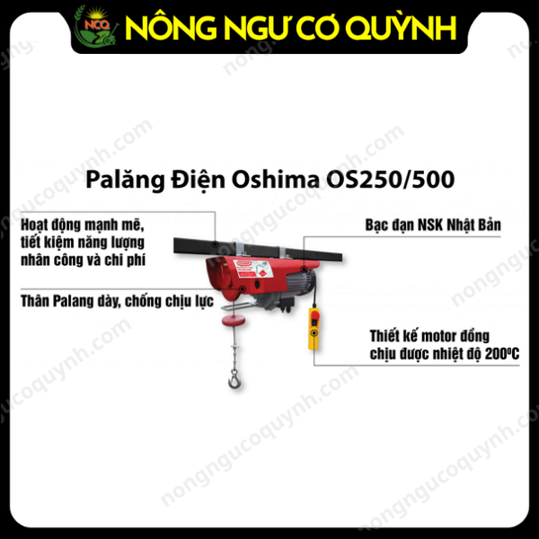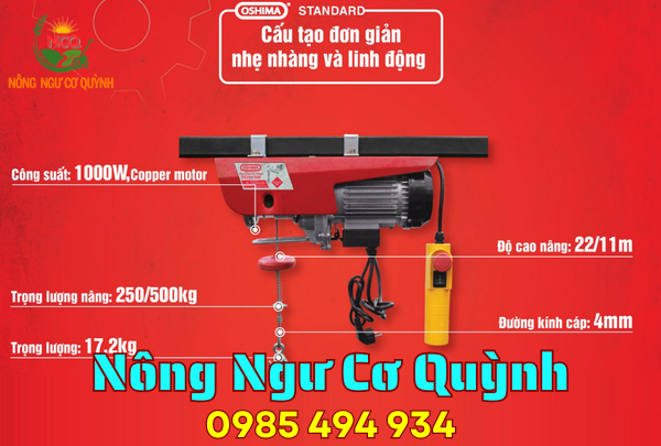 Tời điện Oshima OS 250/500 Đỏ Điện 1 pha
