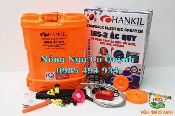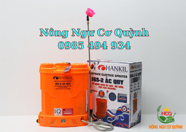 Máy phun thuốc trừ sâu, côn trùng điện HANKIL 16S-ắc quy Cam Bình ắc quy 12V8Ah
