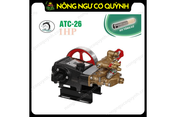 Đầu Bơm Cao Áp ATC-26 (1HP) làm tăng lưu lượng và áp lực giúp nước phun mạnh và xa hơn. Thường được kết hợp với mô tơ/động cơ nổ và ống hơi PVC để ráp thành bộ phun xịt với các tính năng sau: phun thuốc trừ sâu, xịt rửa, phun sương, bơm tưới…