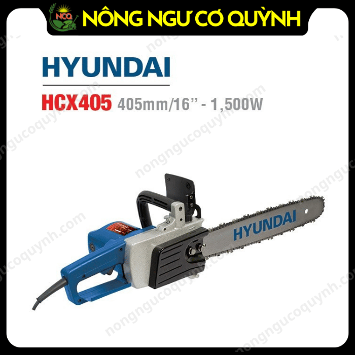 HYUNDAI HCX405 là dòng máy cưa xích chạy điện, được trang bị động cơ công suất lớn 1.500W, sử dụng lam xích 405 mm/16 inch thông dụng trên thị trường nên dễ dàng thay thế.