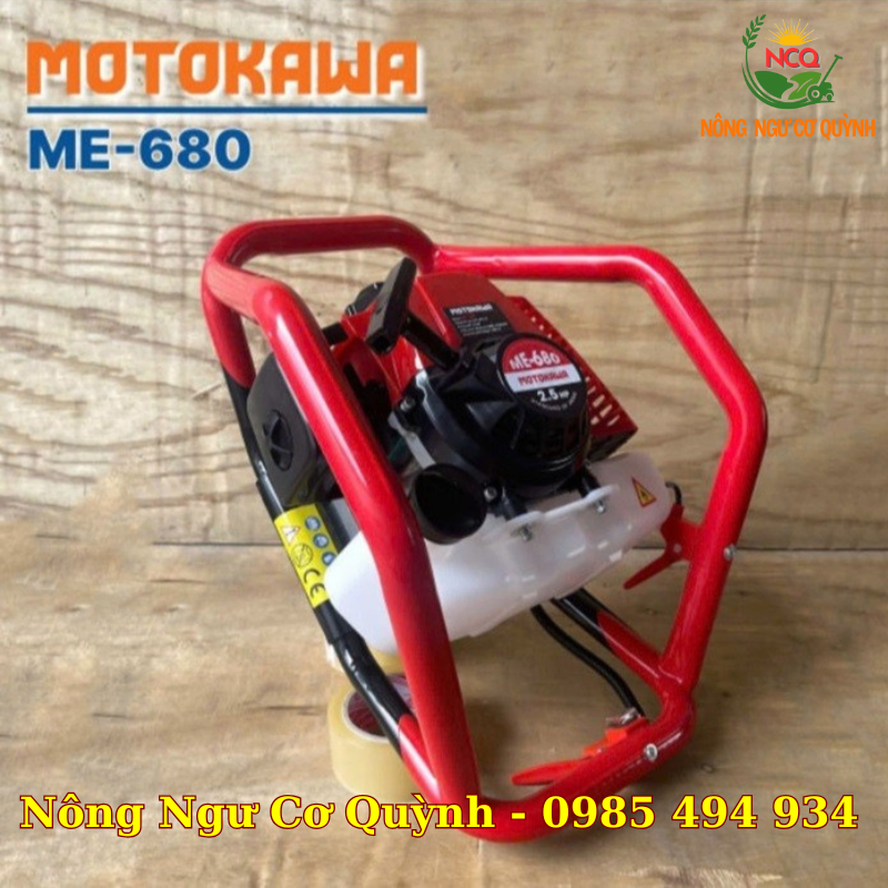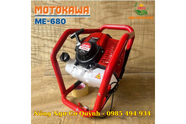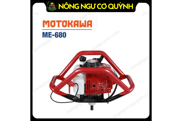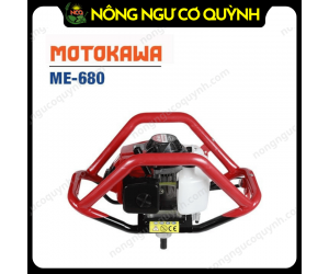 Máy khoan đất Motokawa ME-680 với động cơ 2 thì, công suất 2.5HP, dung tích 63.3cc, tương thích với mũi khoan có đường kính 200mm và 300mm, phù hợp khoan đất hiệu quả trong nông nghiệp và xây dựng.